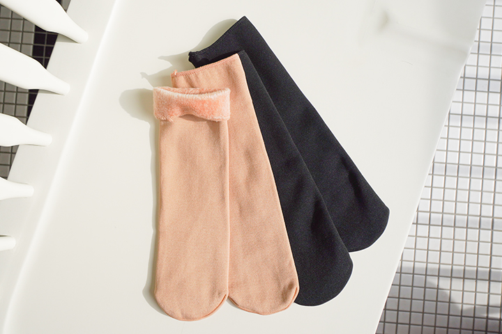 겉 면은 매끈하고 실키한 소재의 양말 속에 밍크 융털을 가득 넣어 발열감이 좋은 겨울 양말이에요.