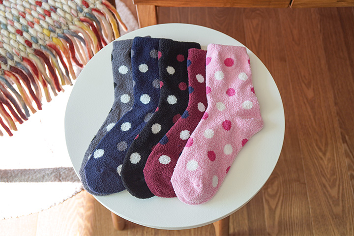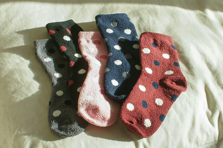 귀여운 도트 무늬의 극세사 수면양말 5켤레